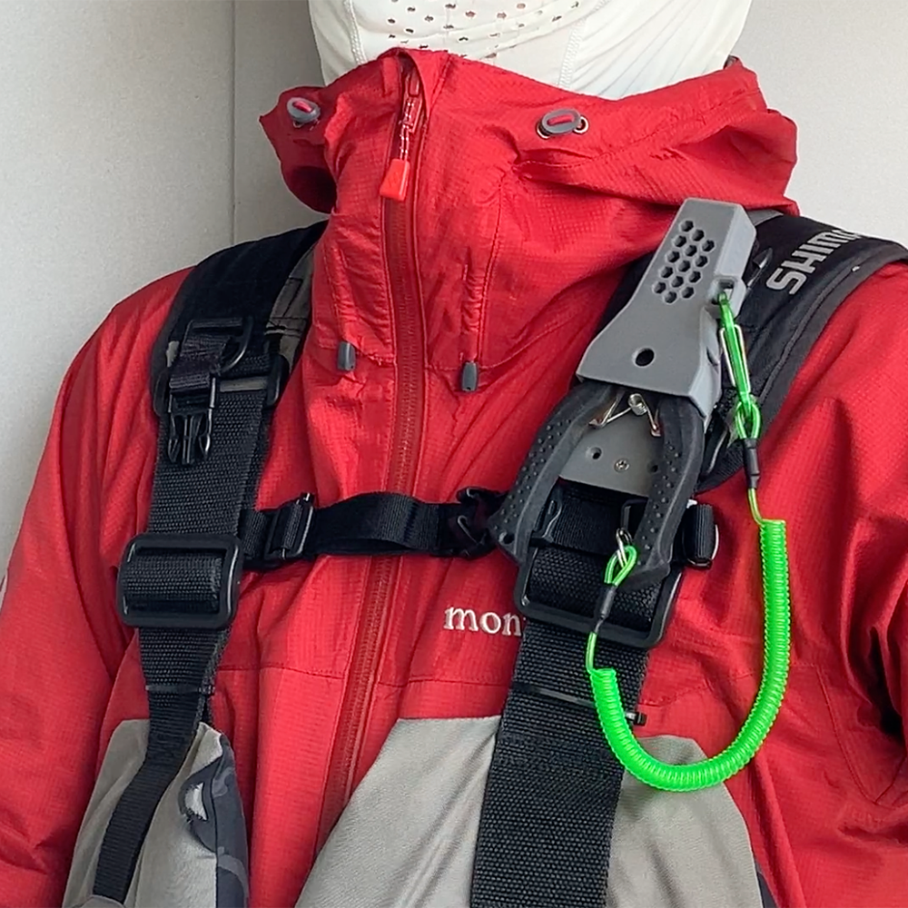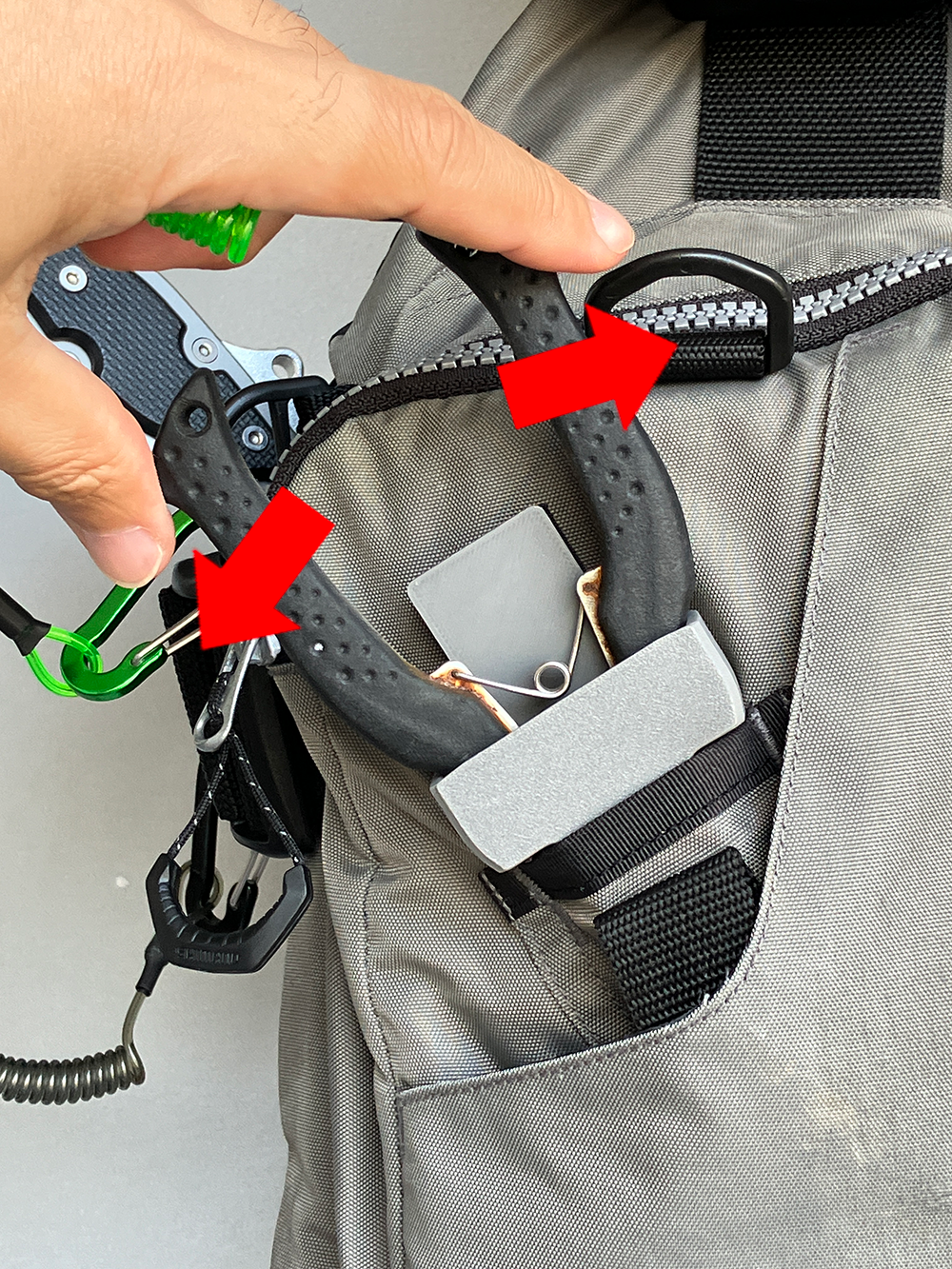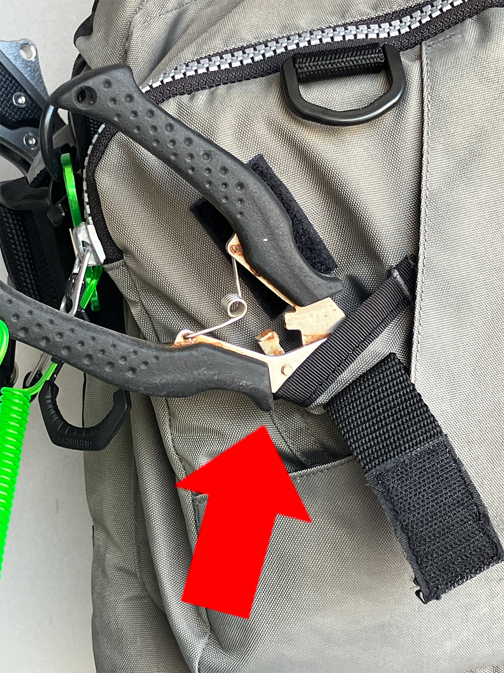 差し込みタイプは、フローティングベスト等に搭載されているプライヤーホルダーに差し込んで使います。