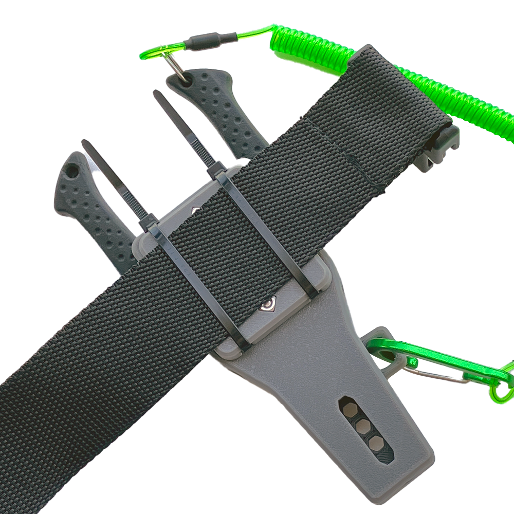ベルトに通す、一般的な使い方ができます。フィッシングベルトやフローティングベストのベルト部など、使いやすいところに取り付けてご使用ください。