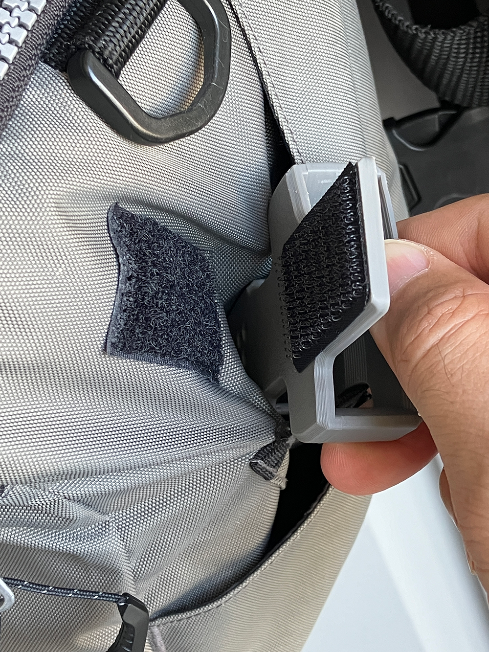 ベスト側の面ファスナーを利用して、本製品を固定します(裏面に付属の面ファスナーを貼付します)。